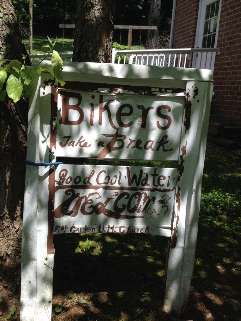 We ate and did some laundry, and soon another bike tourist from the Netherlands showed up …. and another from Lancaster… and another from Pittsburgh… and another who was also an AT hiker. It was quite a crowd and we had a nice opportunity to trade stories of scary dogs (one bit holes into the pannier of our friend from abroad), compare our rigs and gear, and bemoan the hills and food deserts together. It was a great crew of guys.