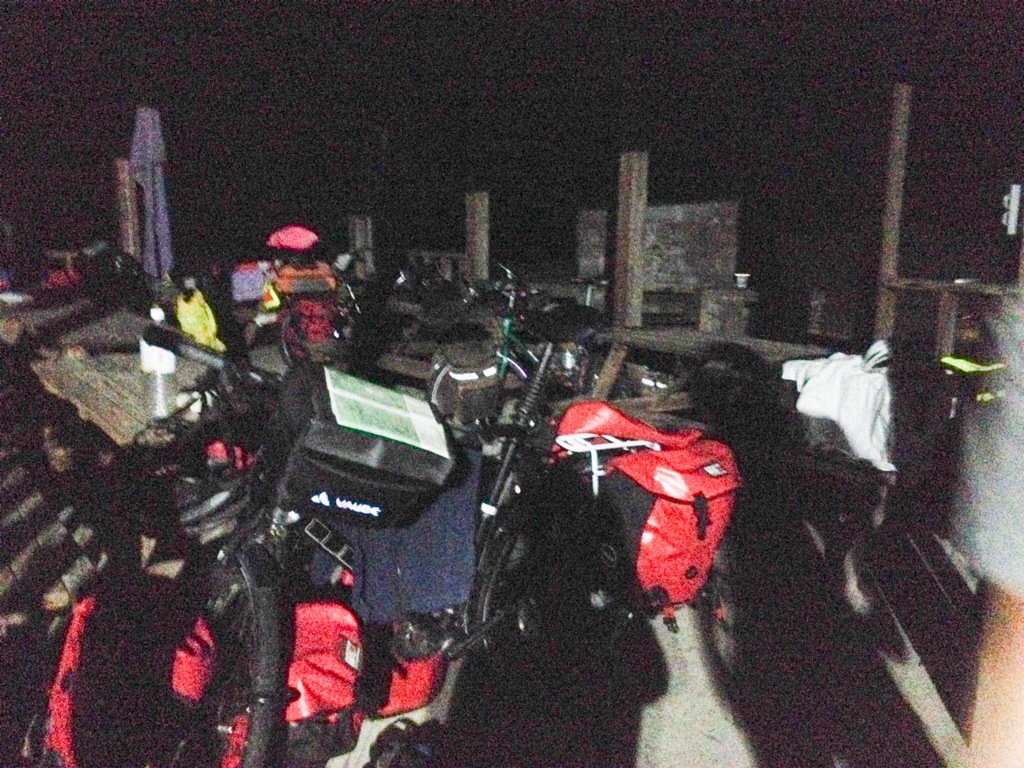 It was a great day to ride bikes and we continued to catch some more perfect weather. Our route map indicated there was free camping permitted behind a small town store in Meadowview. Although we hadn’t been able to reach anyone there earlier by phone to confirm our stay and the store was closed when we arrived at dusk, we decided it would be okay to set up visibly on the side of the store as to avoid looking suspicious.