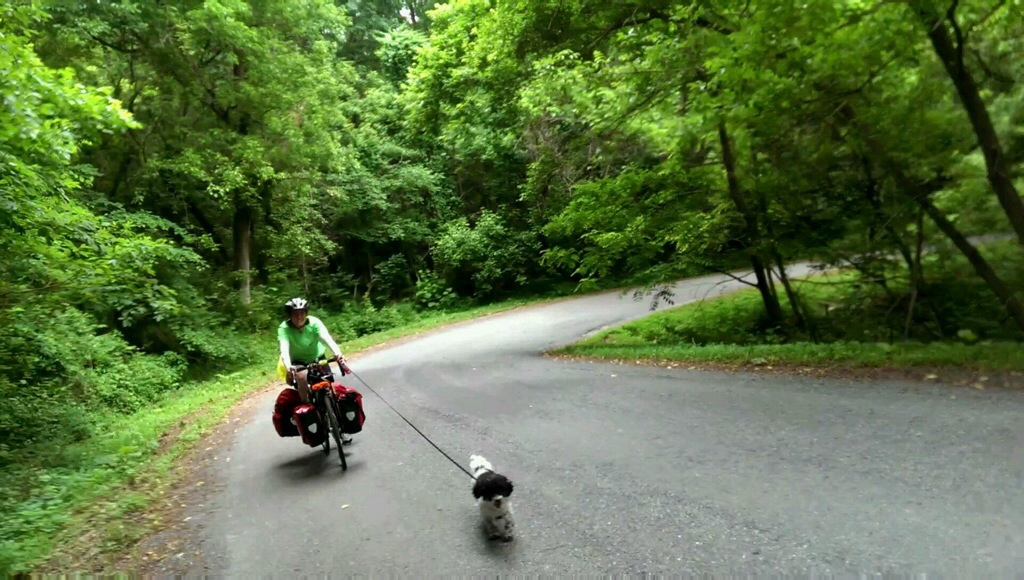 At some point along the way, we stopped for lunch in the cute town of Damascus that was popular among AT hikers and cyclists. Three children eating ice cream asked all about Petunia and our bikes, and their mom told us that she had taken her family on a five-person bicycle from Kentucky to Alaska by bicycle and had written a book about it! We later found out that they were the Pedouins, “ordinary people on an extraordinary journey of giving and receiving,” and their lovely daughters were enchanted by Petunia and her dog pod and accessories.