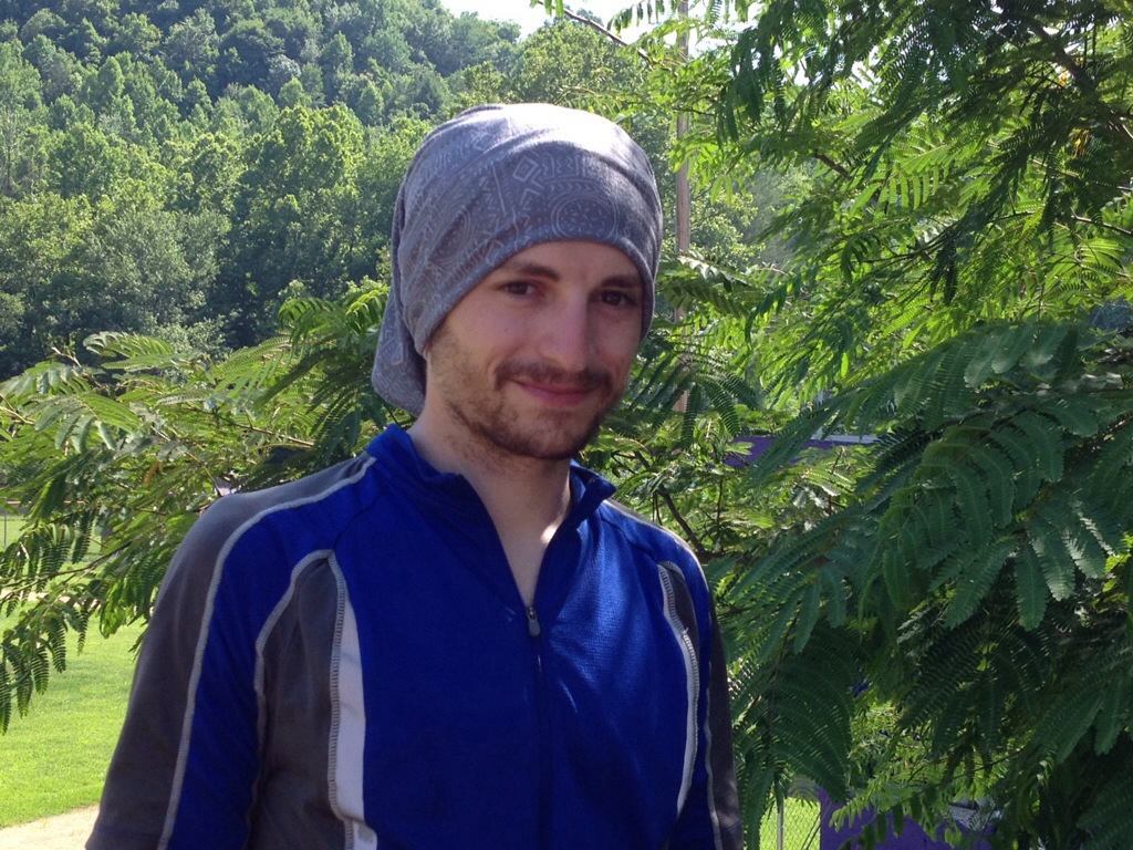On the bright side, some of the ride has been pretty, although the landscape is not what I would’ve pictured if I hadn’t seen it with my own eyes. The roads are all cliffside and everyone lives on a hill or in a valley. The lush greenery in conjunction with Greg’s tribal printed bandana made him look like a contestant on Survivor when we pulled over to let Petunia run in a baseball field.
