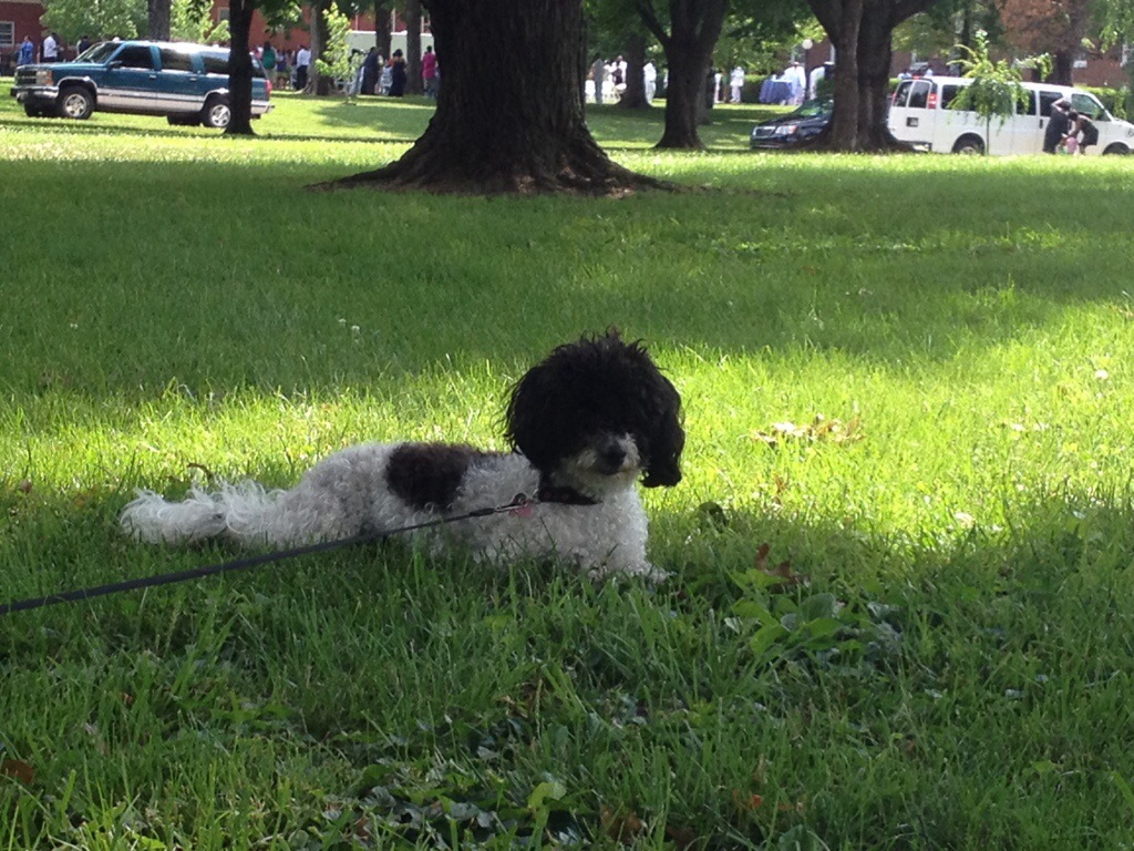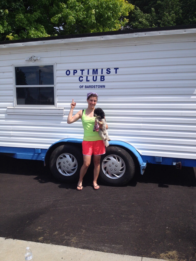 It came down like mad, then turned to Just-Regular-Rain so we kept moving. We have set up in a town park in Whitesville for the night and aren’t sure what to do about tomorrow’s predicted storms. Petunia was not too thrilled with the rain and the heat all day, but one restaurant we stopped at for lunch took pity on us and let us eat indoors in their event room where it was nice and air conditioned. She got to play some pup-world-cup soccer this morning, too, so hopefully that made up for the tough day.