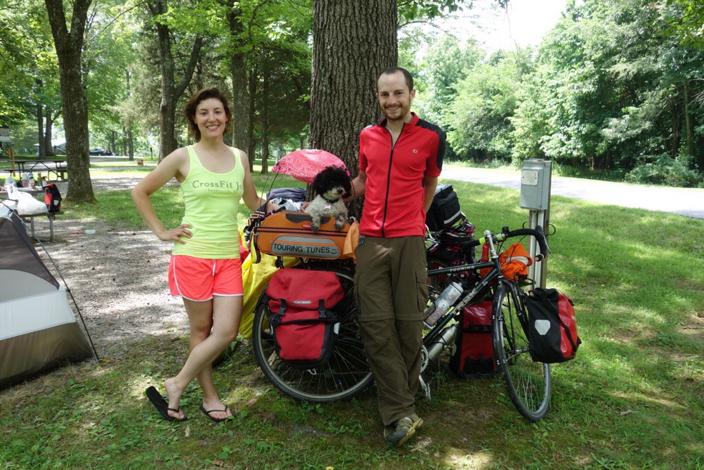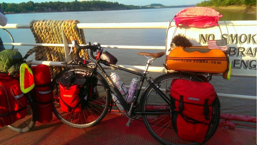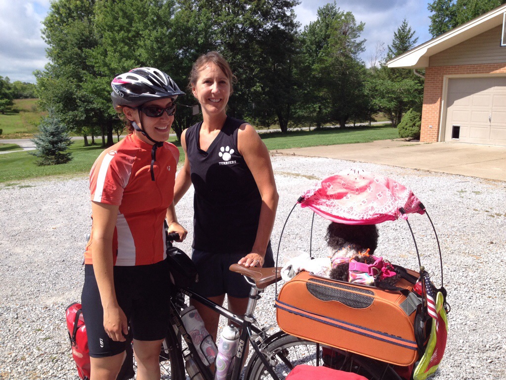 We stayed at Cave In Rock, Illinois, where we met the first two women cyclists we’d encountered on the road! Karensa and Katie were from California and were riding from DC to the west coast, back home. We were riding at a similar pace, so the next night we split a campsite at Ferne Clyffe state park. As it turned out, Katie had recognized Petunia from an article about our trip that her brother’s friend wrote in April on a site called Visual News. It’s a small cycling world after all!