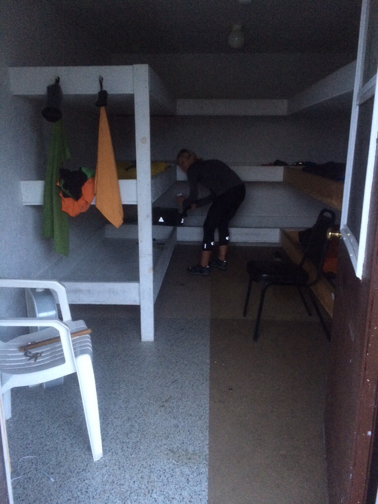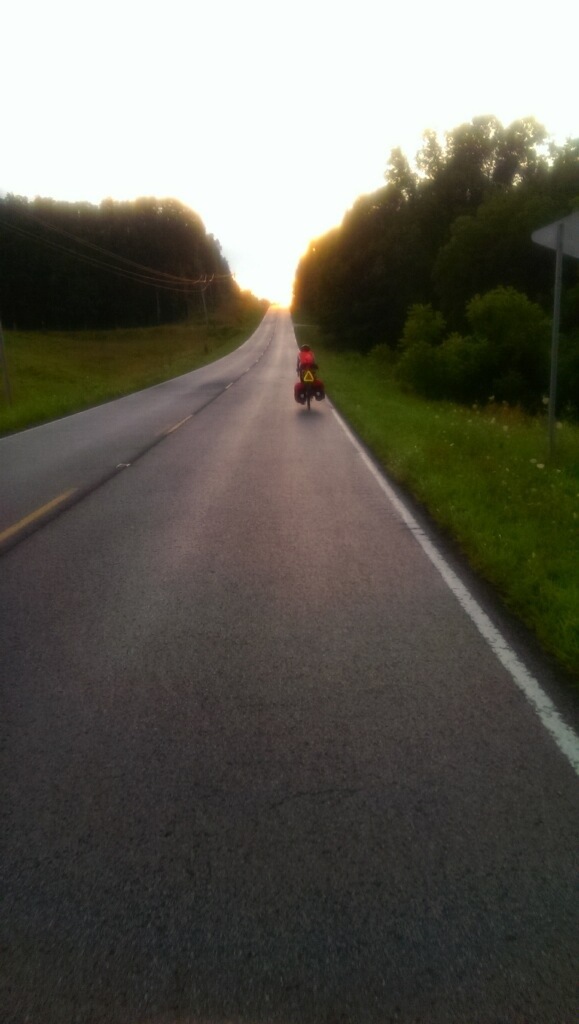 Shortly before we collapsed onto our respective planks, we learned that one of the 5 other cyclists crashing there for the night was competing in the west to east TransAm self-supported bicycle race, and he was in the 15th position. Marcus had just completed a 110-mile day (his 5th lowest day, he said) and he was kind enough to talk with a few of us for a while. He told us about what he ate (“absolute garbage– $25 a meal at McDonalds, gas station ice cream for breakfast”), what he carried (he’d just sent his sleeping bag home to reduce weight, and therefore slept on bare wood that night), and how little rest he got (he stealthily crept out of the lodging at 4 or 5 AM). He was fascinating and told us stories about the other racers, including the fact that the winner completed the race in about 17 days.