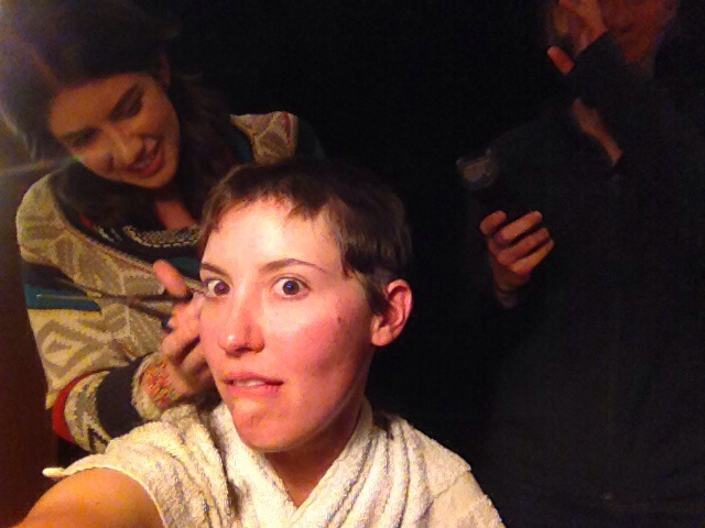 Annie baked us a plate full of chocolate chip cookies that were instantly inhaled, and in our fun conversation, she shared that she’d buzzed her head and it had been liberating. Having a long-standing desire to be low-“mane”tenance myself, we were off in search of her coworker’s barber tools. Finding none, we settled for a borrowed and cleaned beard trimmer, made a coif-cutting playlist including india.arie’s powerful “I Am Not My Hair,” and began to lighten the load on my head.