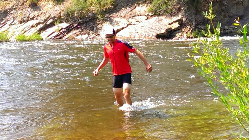 We pedaled on in the afternoon around the scenic lake and toward Hot Sulphur Springs, CO, connecting us back to the Adventure Cycling Association TransAm official route. I ran into a cowboy and cowgirl giving horseback riding tours who told us about a free campground right next to the Colorado River where we could set up and then take a dip in the hot springs to relax our muscles after the previous day’s Big Climb.