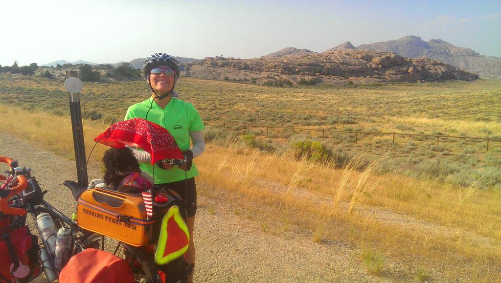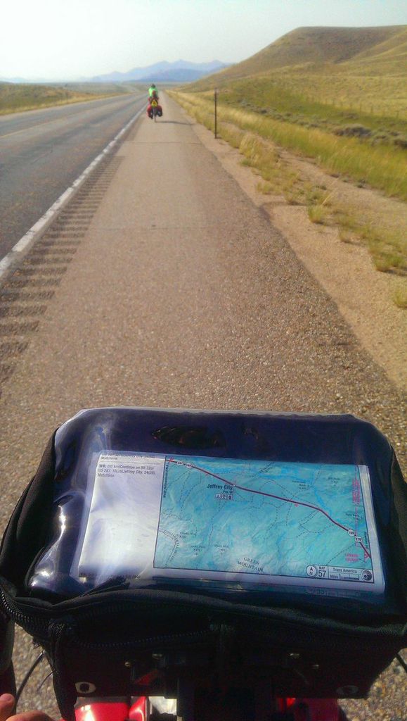An intense heat baked the endless road ahead as we headed toward the uranium mining ghost town of Jeffrey City, with a population of 50 people living within the ~600 square miles of the city limits. After riding 40 miles without seeing any shops, stores, or signs of life, we were out of water and stopped at the first building which neighbored the first tree we’d seen all day. At the Wyoming Department of Transportation highway maintenance facility, we just happened to catch several guys who were on their way out for the day, and they let us refill our bottles with gloriously cold H2O. We sat in the heavenly shade of the tree, eating our last PB&J and ravenously consuming the last of our food rations in tense silence. The water-shortage scare had rattled us both and there was still a long way to ride.