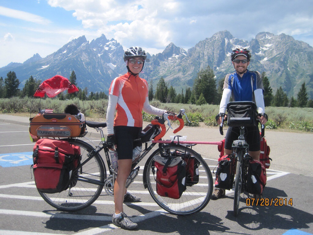 The following morning, we took the Teton Spur loop just to enjoy the dedicated bike path that allows riders to get amazing views of the mountains and ride into Jackson Hole, the famous skiing and resort city. On our way, we met Ken & Ann, a very sweet couple who took some really nice photos of us near the Tetons that really showed the scale of these epic mountains, and they emailed them to us! Bicycle travel affords us the unique opportunity to connect with others who we might not have met at all if we’d been in our cars, isolated, insulated, and independent. We’re so lucky we’ve been given this time to share our experience with others. Cheers to Ken and Ann for the pictures.