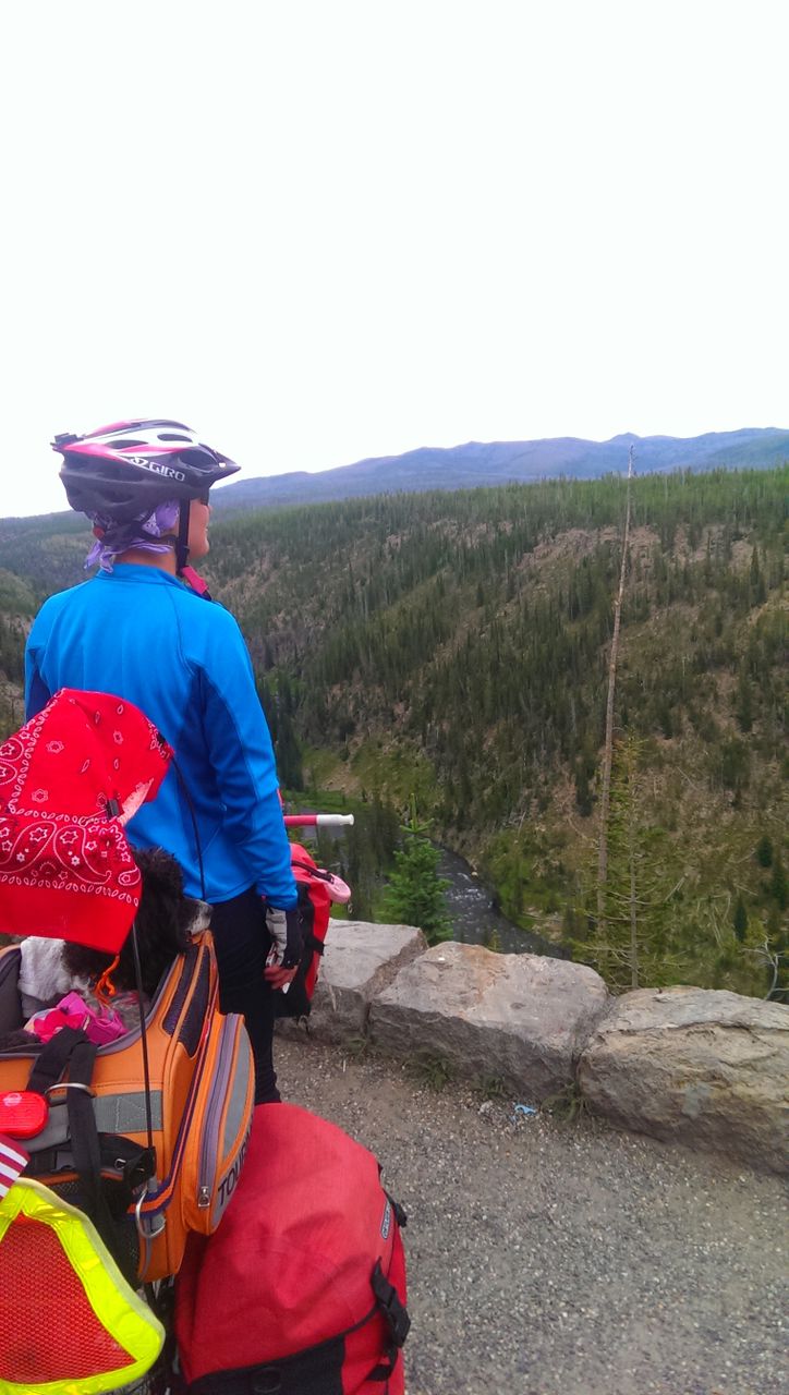 Touted as one of our nation’s treasured environmental gems, entering Yellowstone was an exciting day for sure. The pleasant tollbooth ranger that offered Petunia a doggie biscuit started us off on a nicer foot than our last encounter with a park ranger. Much to our chagrin, however, Yellowstone seemed like the McDonalds drive-through of national parks, with cars and RVs zipping through to get to Old Faithful, take photos, and leave. We’ve seen so much natural beauty on this trip, and even though riding through the geyser fields was pretty neat, it seemed somewhat underwhelming, especially with all of the dead trees due to the mountain pine beetle devastation.