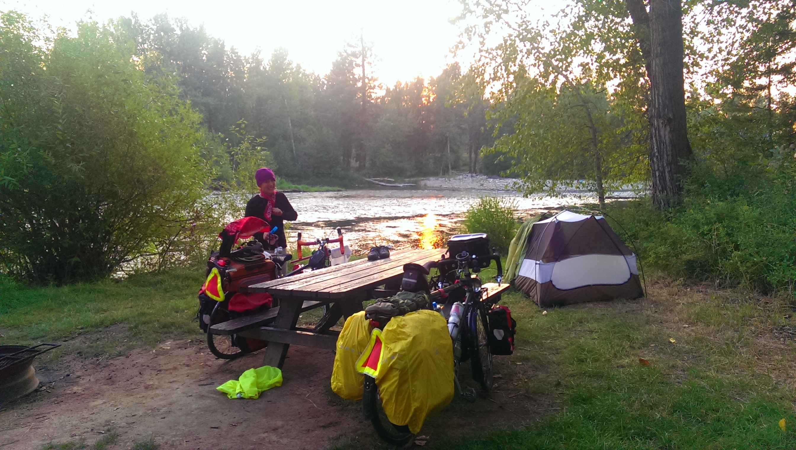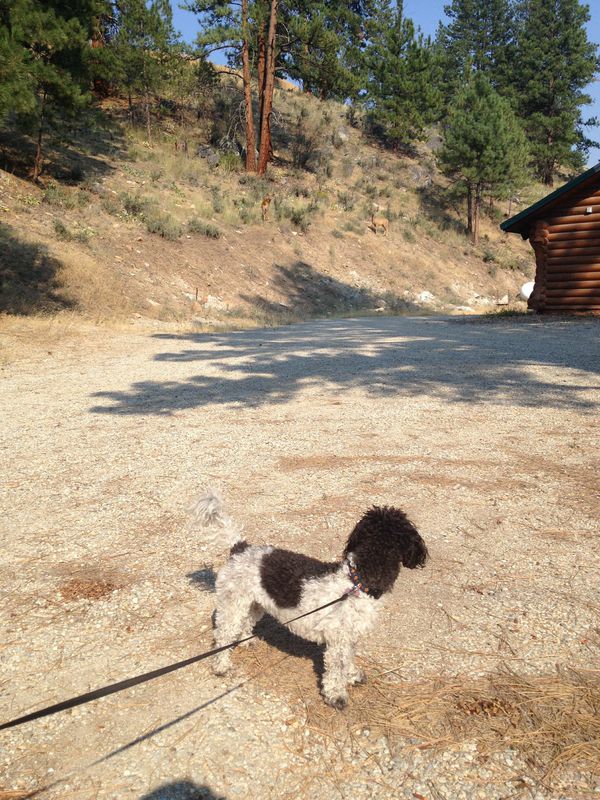 Petunia stopped to scope out some deer on a hillside along the way, and finally we came to rest at a campsite along a river in Montana.