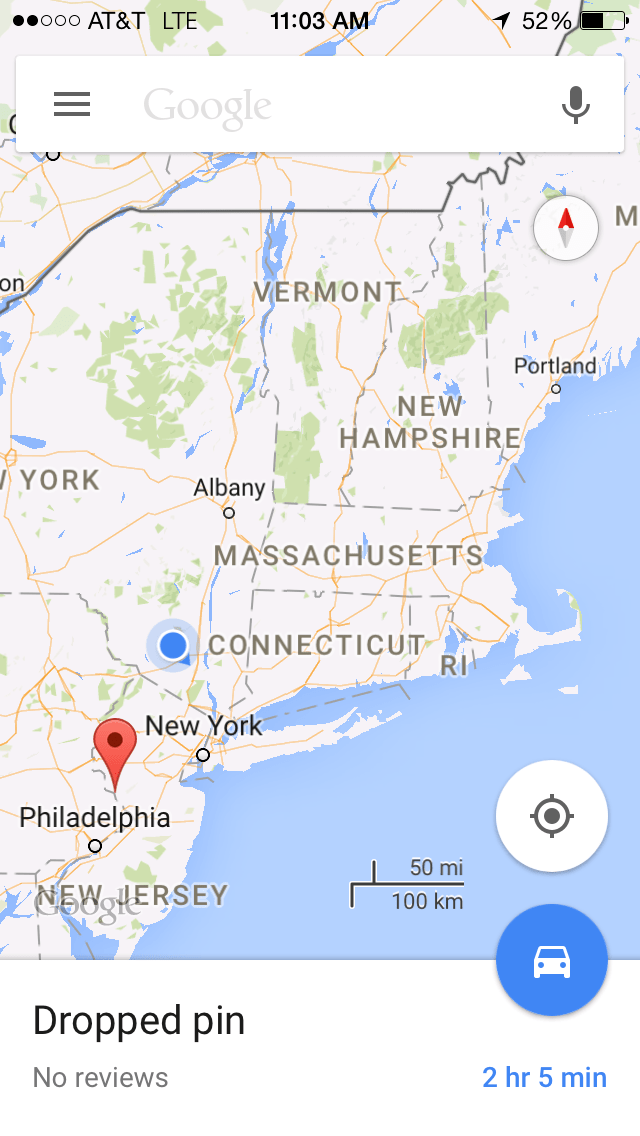 I got a message from my Uncle Mike that said my cousin Marc who lives in Poughkeepsie wasn’t far from me, and that he’d be willing to let me crash there, have a shower, and go out to dinner. “Is that enough incentive?” Well I surely couldn’t turn that down.