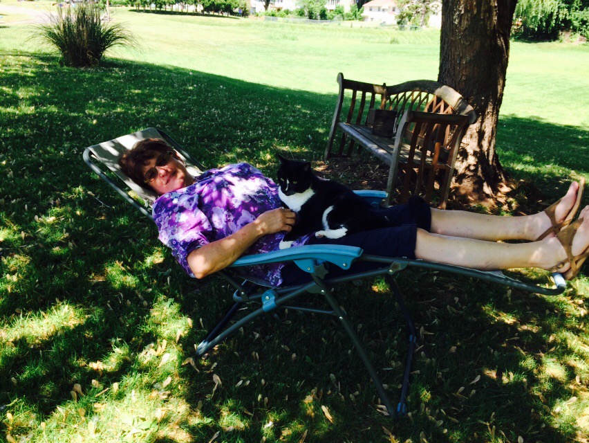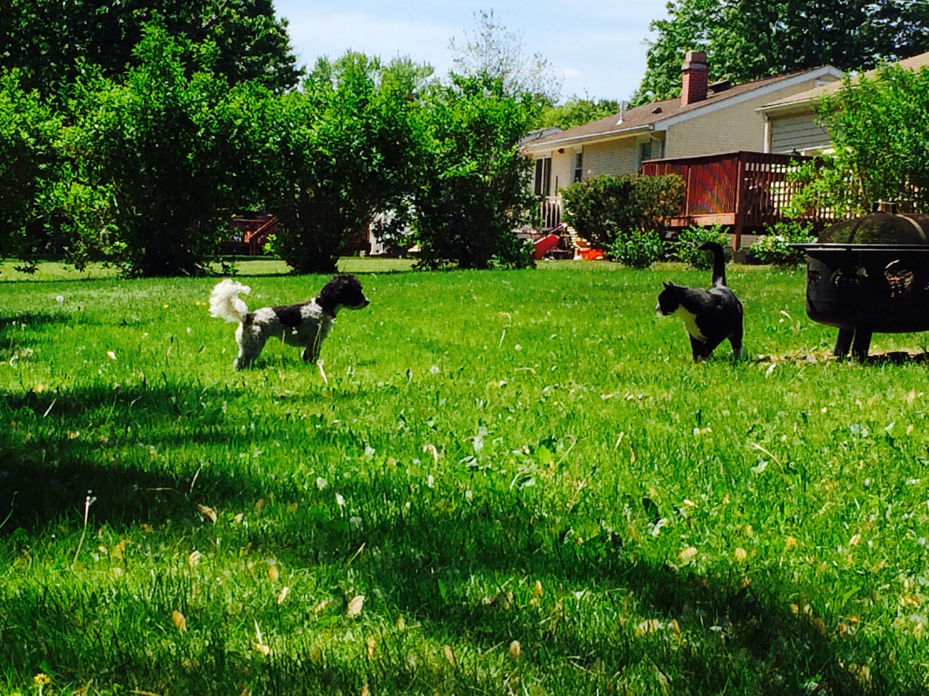 Petunia and Felix say hello in the yard. They’re not as close as Tunes is to my mom’s other cat, Millie.