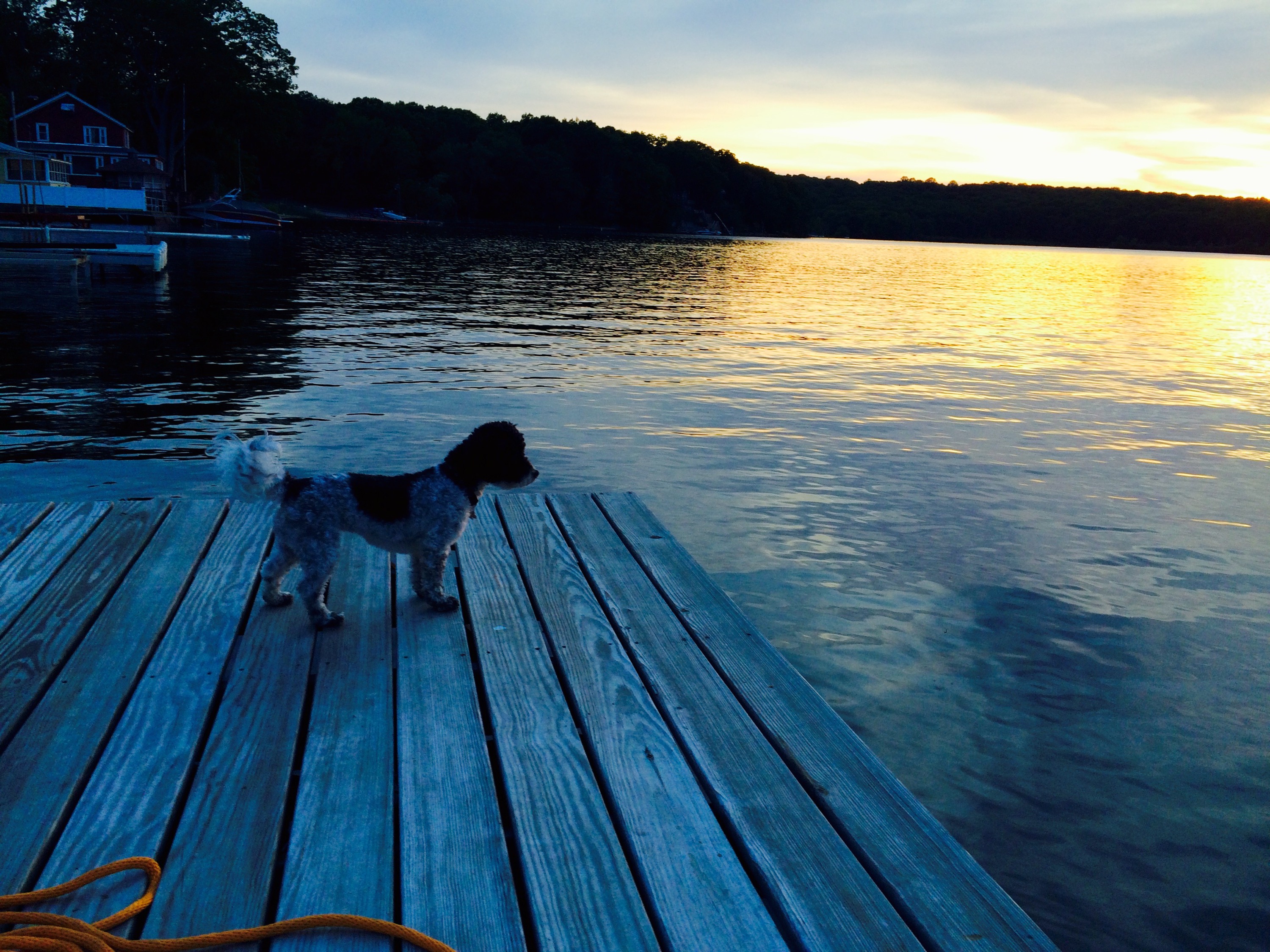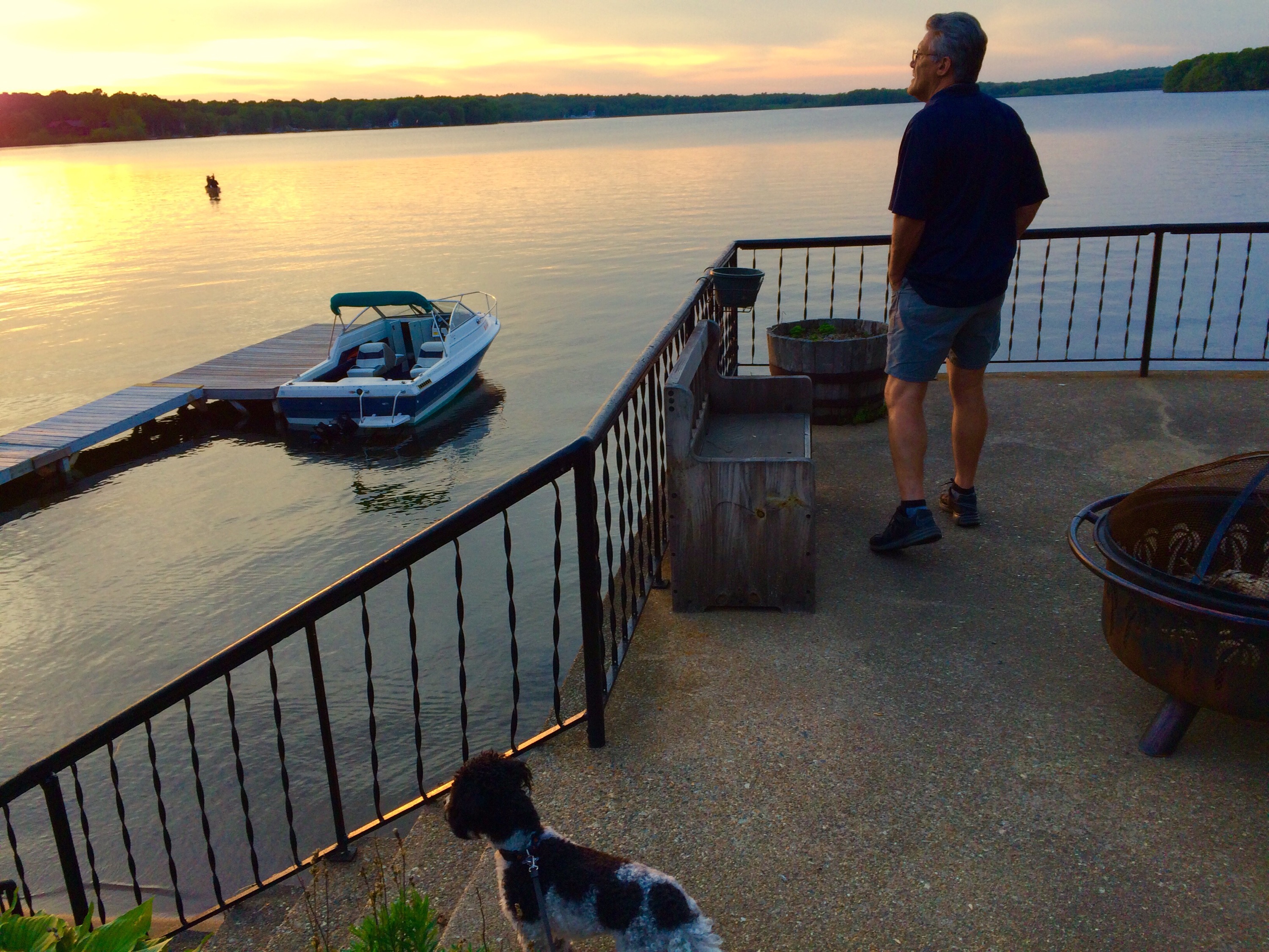Dad and Tunes at the lake at sunset.