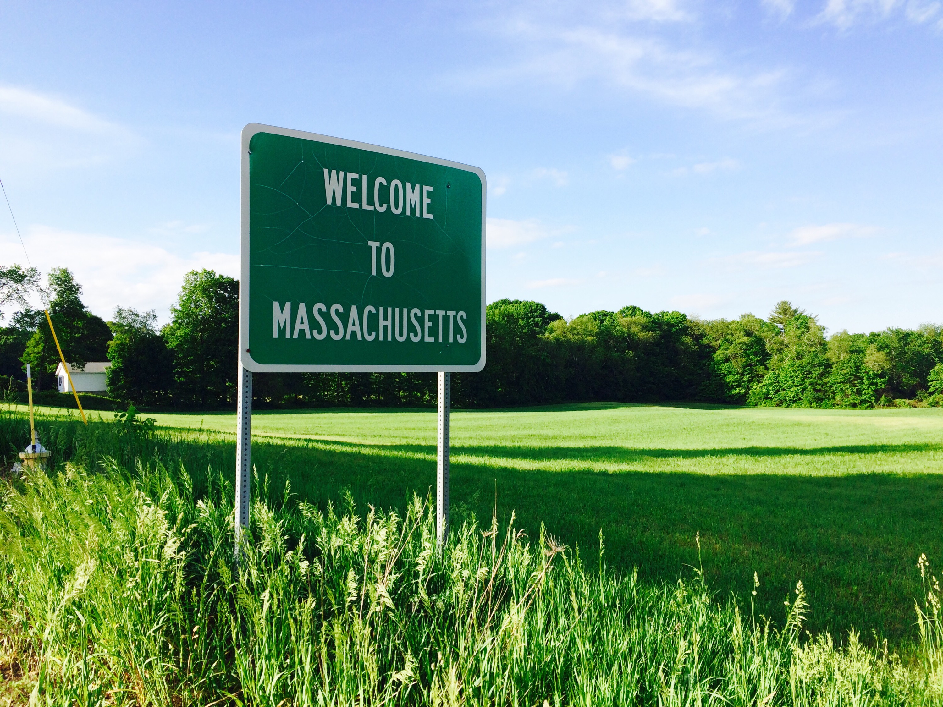 I touched the border of MA, but dipped shallowly back into northernmost CT around 6:30 PM, the witching hour for rogue camping days. I had to start assessing the local situation to determine where I might post up for the night before it got too dark and buggy, and I could feel the temperature dropping slowly and steadily. If I had hope for any type of makeshift shower, it was going to have to happen soonish. At a corner pub and restaurant, I entered with a couple of empty bottles, hoping to top off in case my unknown camping digs did not include water access. The restaurant half of the building, with repulsively colored vinyl booths and a rather warn out industrial gray carpet, appeared to be strictly for show as it was was totally dormant, but every seat at the horseshoe shaped bar was full of raucous diners and drinkers. A party of 6 was just leaving, shouting their goobyes at each other, and I backed out of the way to and waitied for them to bumble past. Finally, the bartender made her way over to me without looking up and asked flatly, “Need a menu?” I explained that I was just hoping to fill my bottles with simple tap water. She half-frowned and thought about this for a second, until a regular there in a faded trucker hat and shirt as ugly as the seating piped up, “Sure, it’s alright! You wanna Budweiser too? Ah I bet you don’t even drink noway. Saw you ride up on your bike.” Trying to deflect the questions I guessed were coming, I asked if he noticed my little guard dog on the back as well. He whooped, “No way! I can’t believe it!” “It’s true, I saw that there dog on her bike just as she came on the lot,” agreed another patron gripping her American beer. “Well how ’bout that?” the first one said, and for a moment I wondered if I’d taken a wrong turn out of Bloomfield and ended up in Virginia or Kentucky again. I definitely wasn’t making that good time. I grabbed my water bottles, thanked the waitress-bartender sincerely, smiled politely at the noisy crew and took off. Before I made it to the door, trucker hat bellered, “So whaddya camping or something?” “Yup! We’re on our way there now. Have a good night, y’all,” I grinned and ducked out.
