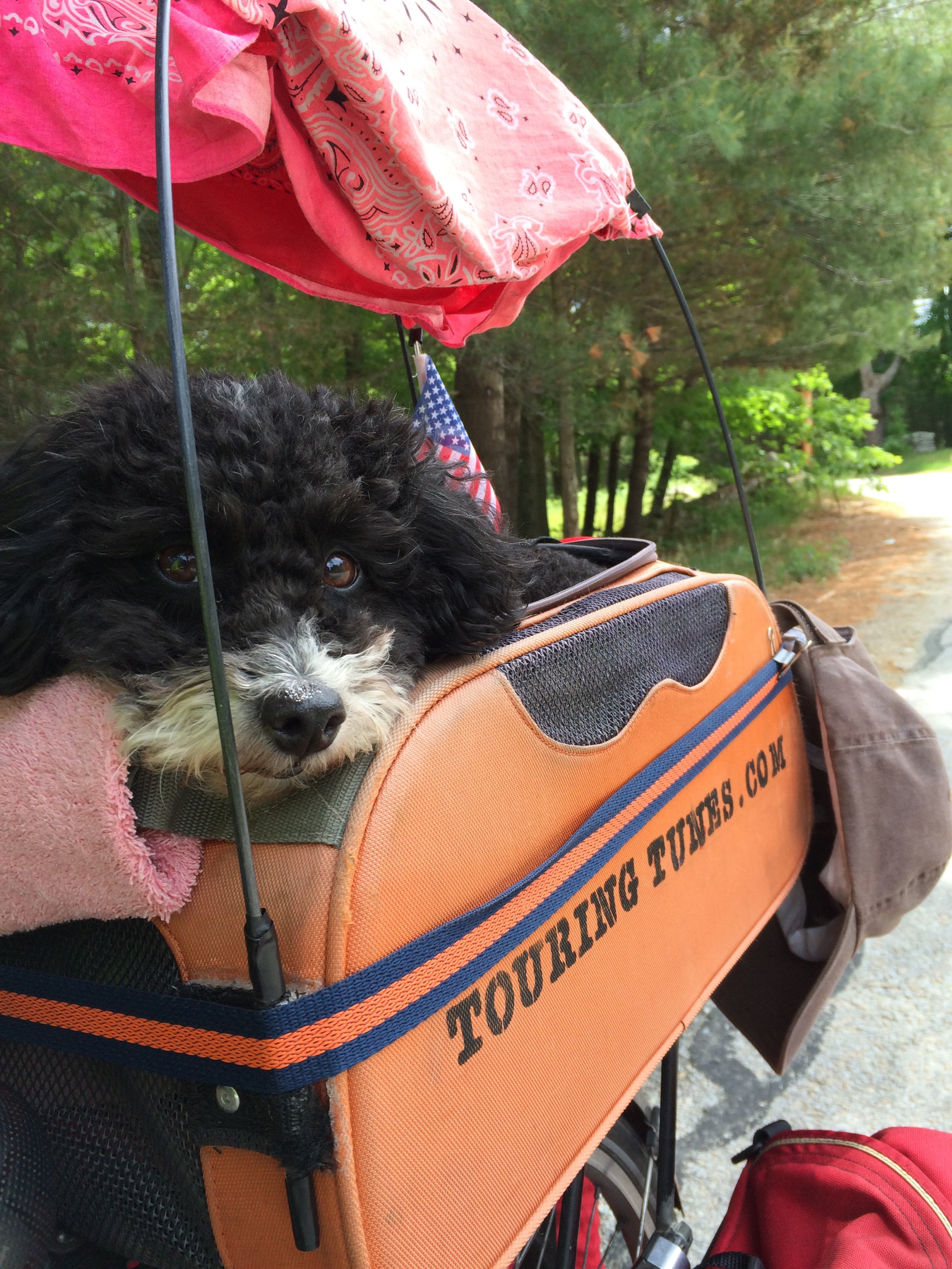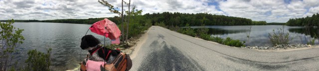 I also grabbed a big veggie-heavy grinder from the chain sandwich shop attached to the store, and fed Tunes the cheese and meat while I chowed down on the rest and perused the maps, trying to figure out where to stay later on. The next few stops seemed to be bigger towns/cities, like Framingham, so I suspected with a higher population density, it might be harder to rogue camp. So I sent a couple of last minute long shot requests out on Warm Showers. I also got a minute to call my Great Uncle Bill, from Natick, to see if I could swing by and say hello, but he sounded tired and explained that his apartment didn’t allow dogs, so it might be a complicated trip. I felt badly for not being able to see him and my Great Aunt Laura, like I felt bummed that I missed the opportunity to swing by my Aunt Terry’s workplace when I rode through Ellington, CT, but at least I got to talk to him, and Terry was in my thoughts (still have to call her and Uncle Fester, though. If you’re reading, hello, Looke family!).