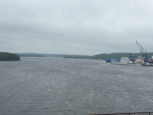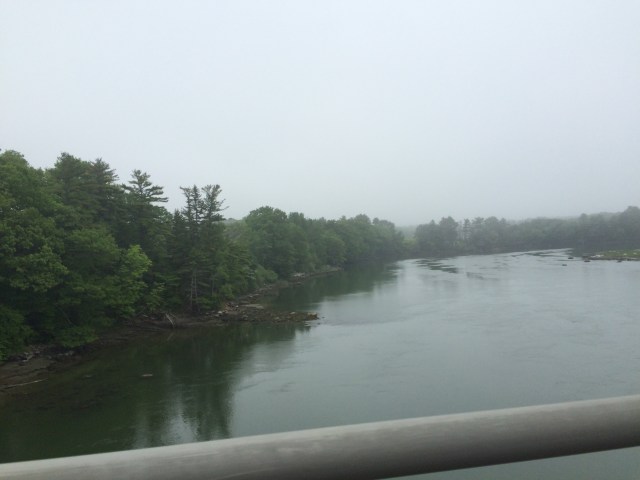 We rode through the Brunswick Naval Air Station and took a few photos while I put my raincoat on, and then we rolled through the woods near Bath and Wiscasset. It felt cold, clammy, and a constant mist covered everything until it was either sticky or totally damp.