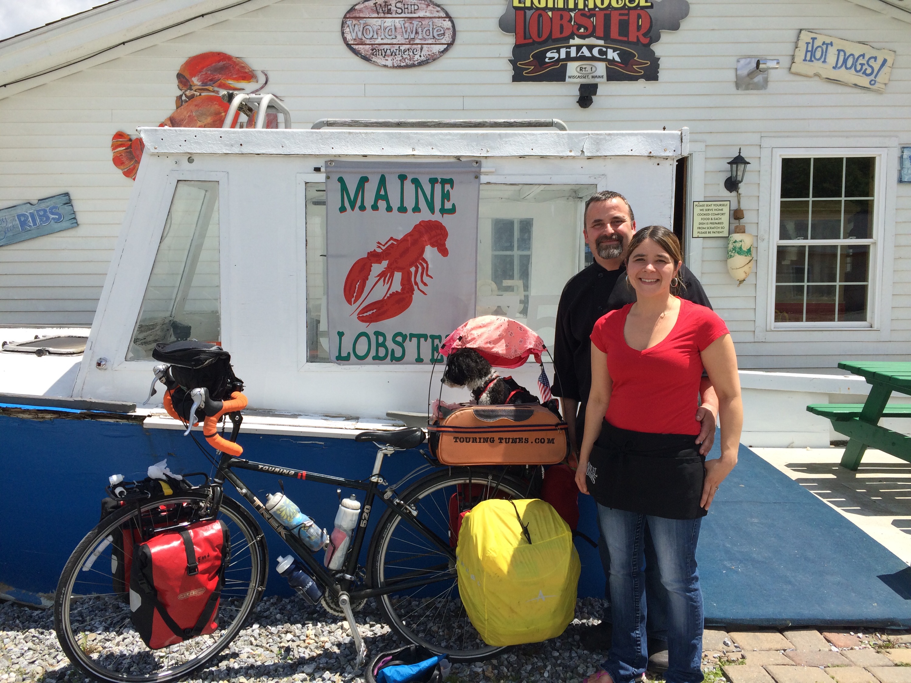 The weather was really fantastic today, and the route was virtually unrecognizable without the thick coat of fog graying everything out on a nearsighted horizon. Petunia and I stopped at the Lighthouse Lobster Shack to see if they could give her a sample. I didn’t want her to leave the state without at least a little taste of Maine’s favorite crustacean. (Turns out, she was not much of a fan, but thanks to our new pals for letting her try some!)