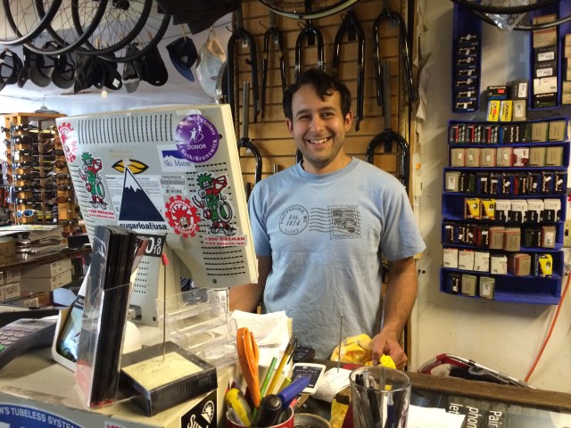 I noticed my front derailleur was not shifting down to the smallest cog, which made some of the longer hills unnecessarily difficult. Knowing that it would be prudent to get this resolved before tackling the Kancamagus Pass, I stopped in at the Bath Ski & Cycle shop, where the staffers were quite amused to see me touring with Tunes. Jessie taught me how to make a little adjustment to change the limits of the derailleur movement and he also adjusted the cable tension a bit, and I was back in business with my granny gears, at no cost. Thanks guys! He tried to help me find a replacement for the one Arkel rain cover that I lost a couple of days ago, but the ones in stock did not fit the oversized bag with the tent. In the meantime, a cost-effective large black trashbag with a drawstring will hopefully do the trick. If I’ve really only lost that one thing in over 600 miles of riding around, I think that’s a pretty good ratio for me. Might even be my personal best!