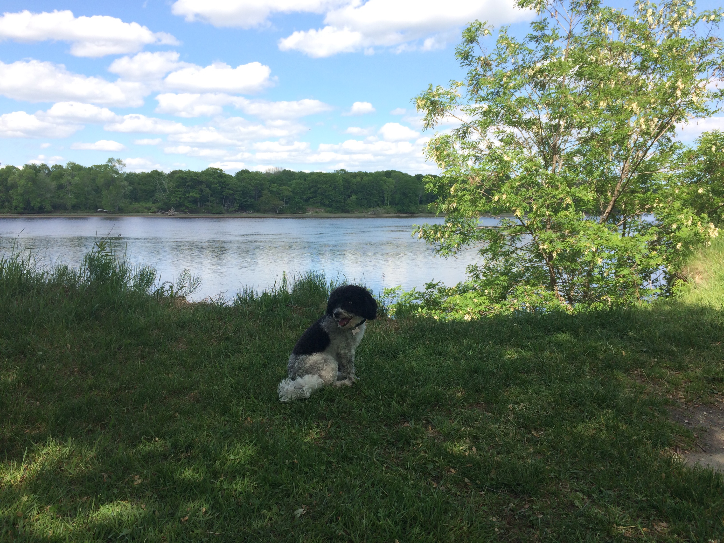 Joel, a former Navy pilot, and Nancy, a retired nurse, both in their eighties, were as sweet as can be. Even though we’d never met, they made me feel totally comfortable and welcome, and we talked with an ease of familiarity like we’d known each other forever. Even though our genetic link was limited, my father’s sister’s husband’s brother and his wife were already becoming very dear to me. Sadly, however, I had arrived during a time of grieving. Just that morning, they discovered that the puppy that they had hoped to nurse back to health after being delivered by emergency C-section had not survived through the night. Petunia and I watched as Joel buried the little box in the yard with great care. It was a hard day, but they were happy to see Petunia, I think, despite their sorrows. Poodles were obviously were obviously at the epicenter of Nancy’s life, and there wasn’t a surface that lacked some  image of the curly-haired, poof-ball tail breed. From the prancing poole coth napkins, to the wall decor with illustrations and fancy-breed magazine covers, the fuzz-domed crocheted wine-bottle cozy, to the many framed American Kennel Club awards, there were poodles everywhere. At one time they’d had seven dogs, but now there were just the three, after the sad absence of the lost puppy.