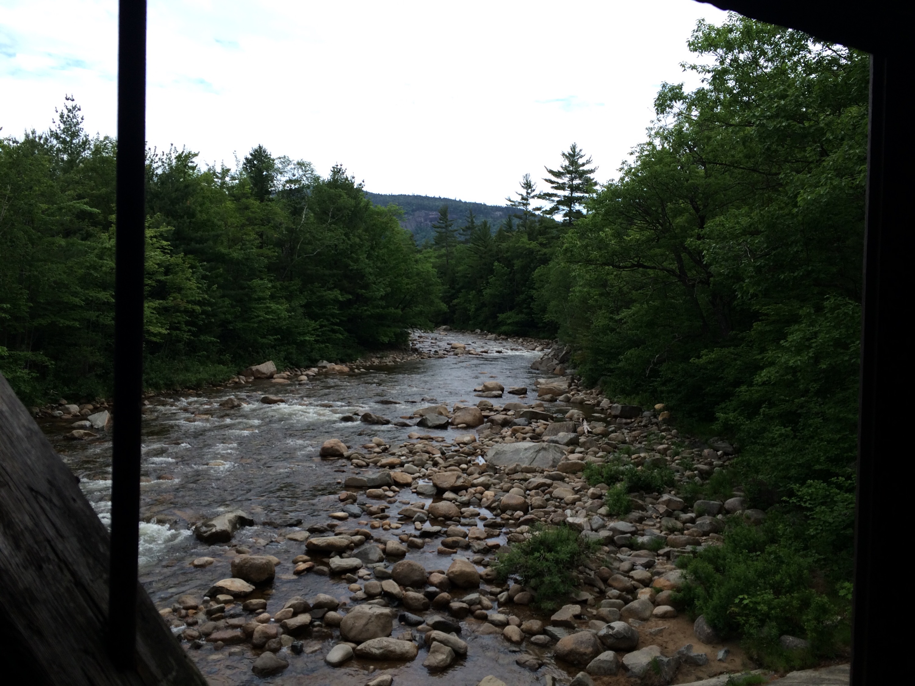 Connie and Bob generously offered me incredible hospitality, and I ate my weight in vegetables at dinner. Both former teachers, they were in equal measure fascinating and entertaining hosts– they shared stories about recent black bear encounters and their attempts to thwart them; skiing trips on Wildcat and other mountains; their own travels and adventures, including stories from other wanderers they’ve hosted; and the history of their current town, population ~800. Connie taught me how to spot a poplar tree, and also pointed out other arboreal interests, including a blight on some of her evergreens. We were joined by their friend Peter, a longtime serious ski and aquatic instructor and cyclist, who offered to pedal behind me to the top of “the Kanc,” in a very kind gesture of solidarity. Peter was a quite fit 60-something, having ridden a bicycle as his primary mode of transportation over the last few decades, and I politely tried to dissuade him from joining me going uphill in the morning. I knew my effort would be a long, sweaty, slow, and probably disappointing day, and I’d been somewhat anxious about my first big ascent since my tour last summer, but undeterred by my light protestations, Peter agreed to meet up around 8 AM in Conway to join the perspiring parade.