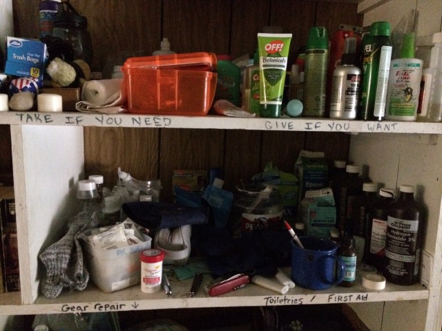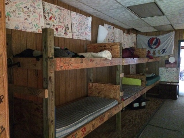 Covered in hiker graffiti, the six-bunk, multi-couched communal dorm had once held over 30 hikers one night during a very busy, rainy week, Chet told me upon my arrival. He was an incredibly warm spirit, and my friend was not incorrect when he’d mentioned that the hostel owner was one of the bravest, most inspirational trail angels ever to exist. As far as the hostel itself, which was an addition to Chet’s own home, amenities included a warm shower, laundry room, and shelves of take somethinhg/leave something clothes and accessories awaited any long-distance travelers who sought refuge there. Then, of course, were the many stories of other admirable hiker heroes and heroines, artists and trailblazing strangers, wayward partiers and unscrupulous hobo types boasting trail names like “Zero” who spent multiple days freeloading on the reclining chair in the main house’s living room. The trail had taken all kinds of people at all abilities and body configurations, and the hostel owner had taken in most of them, including the odd skiier, traveler, or in my case, cyclist and dog.