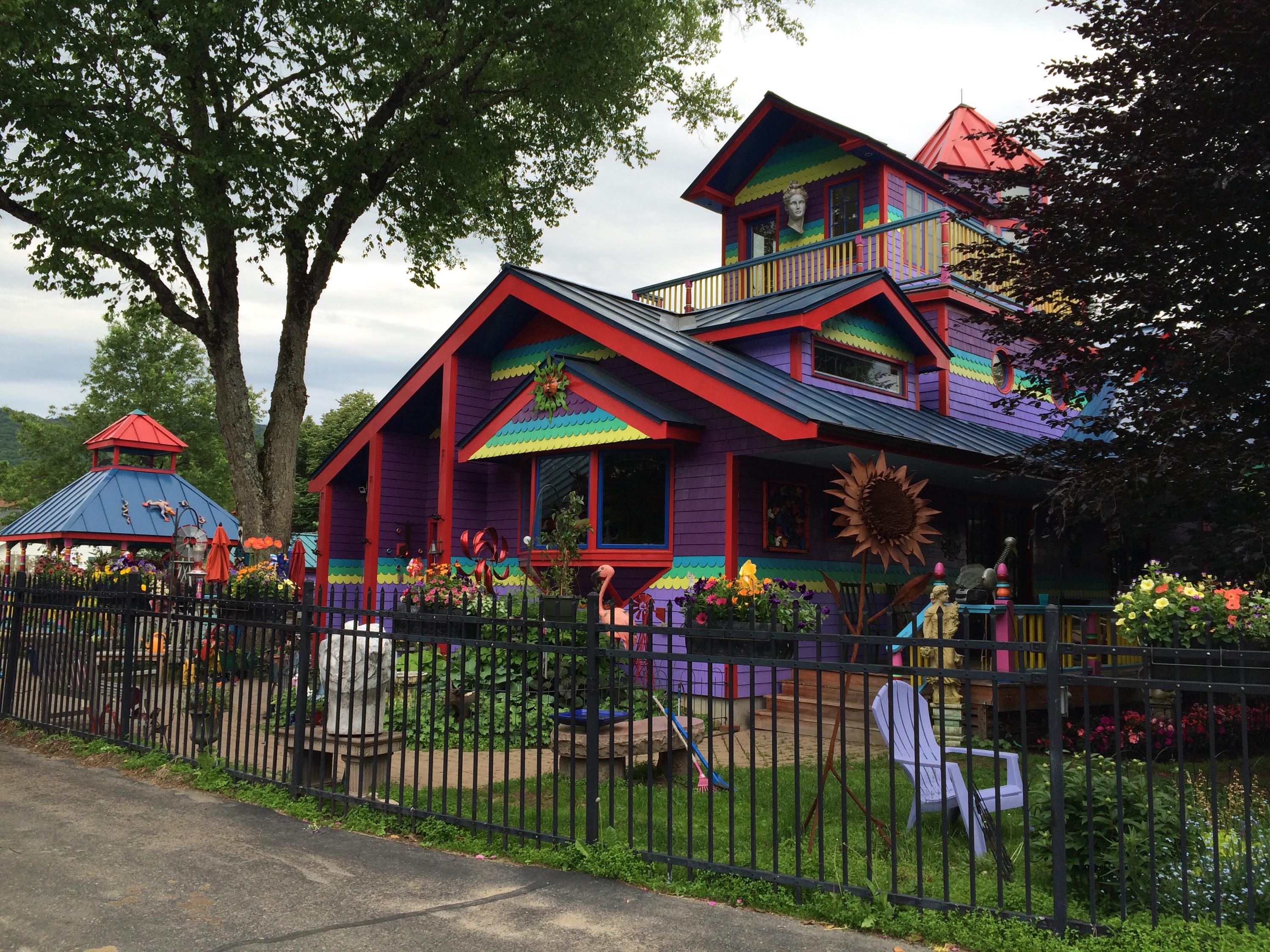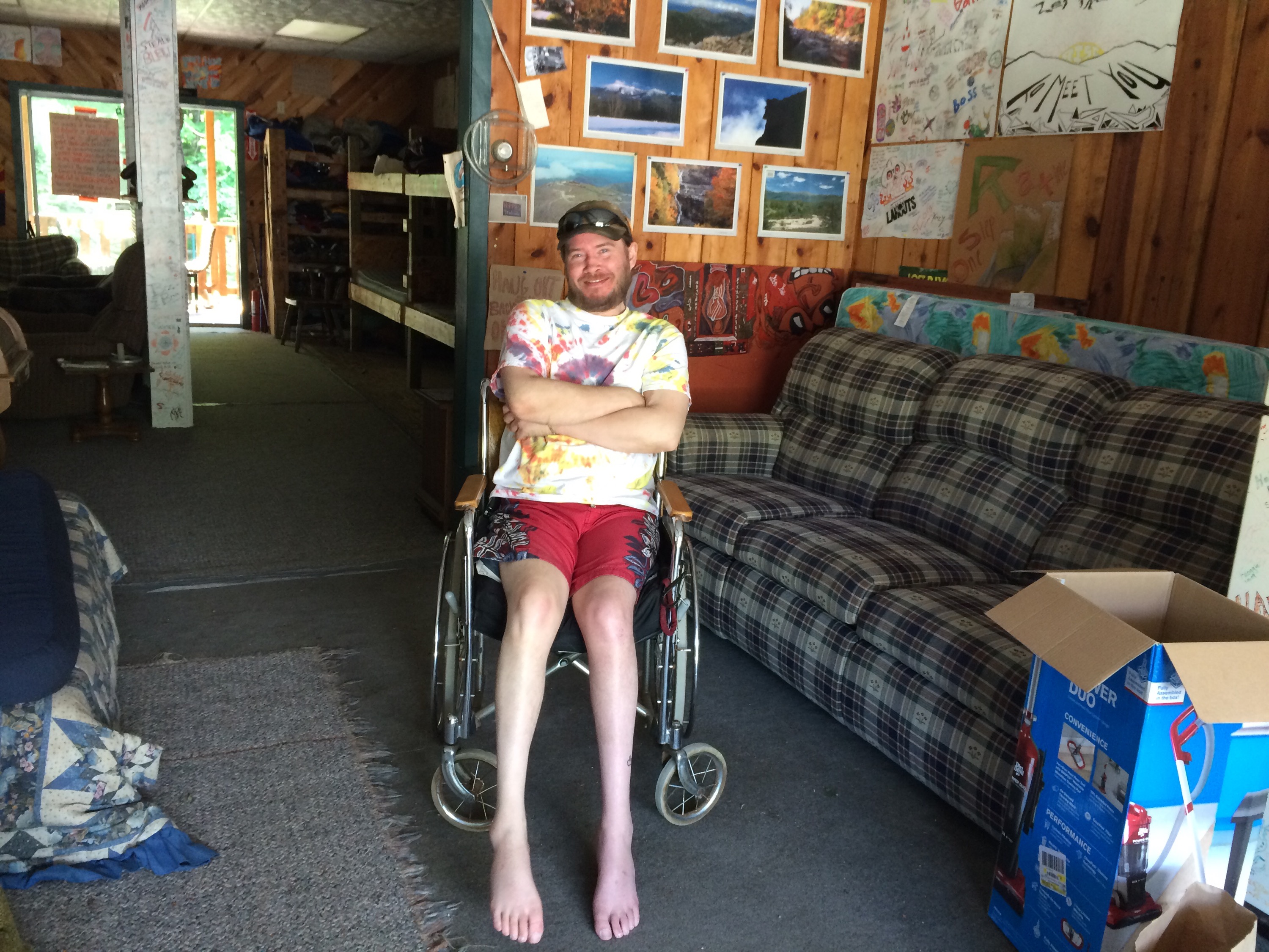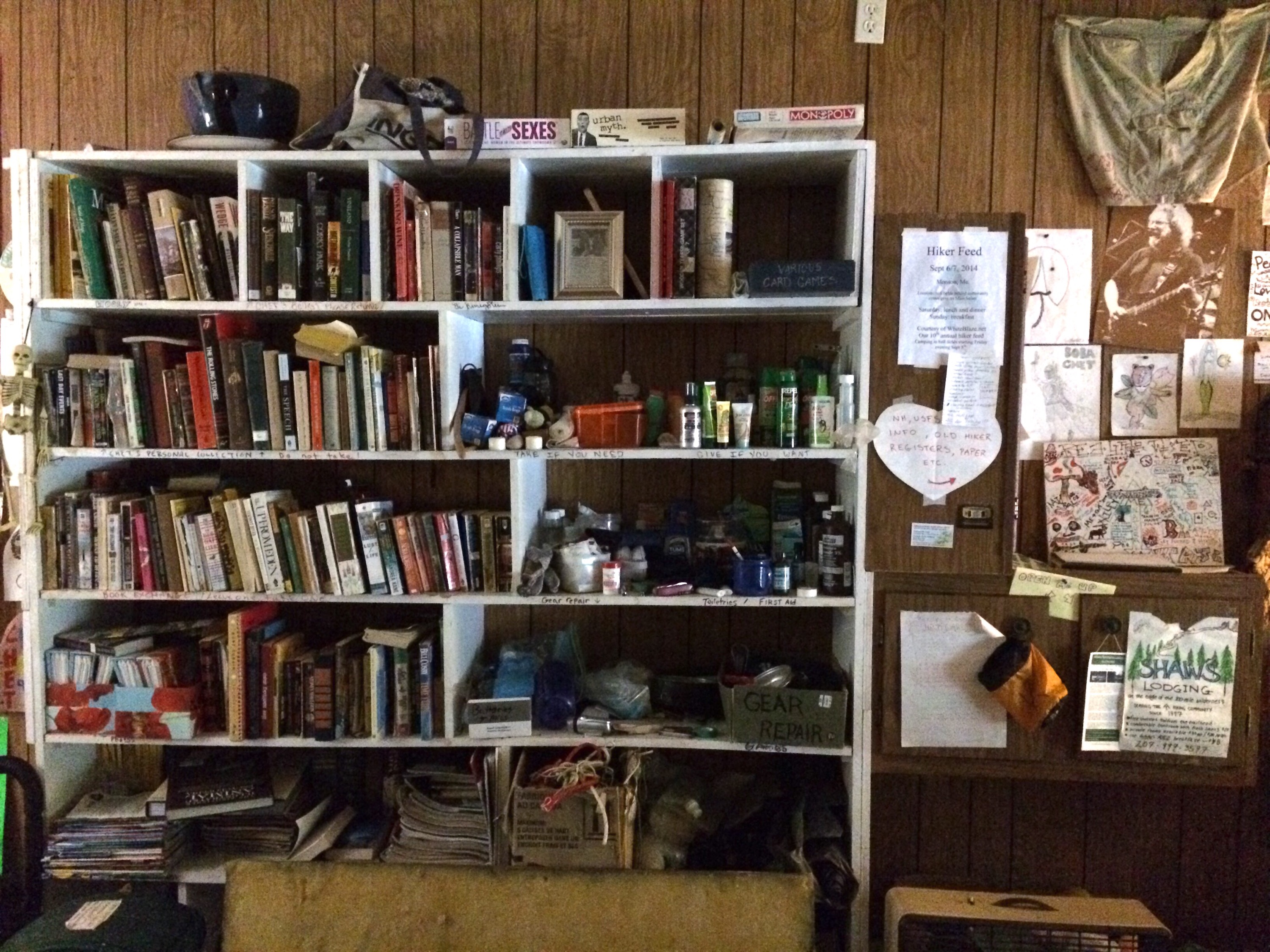 Flying downhill past the great White Mountains of New Hampshire was an incredible thrill, and even though motorcycle weekend was just kicking off in this area of the state, bringing in thousands of rumbling two-wheeling tourists, I had the downhill coast almost entirely to myself. When the road finally leveled out in the city of Lincoln, I was feeling pretty euphoric and ready to make the next and immediately impending thousand-foot climb into the following big city, North Haverhill. But first, I stopped at an outdoors/sporting equipment store, thinking that I could get some advice on camping, or just to get off the saddle and peruse water treatment tablet options for a few minutes. On a tiny sign in the corner of their door, I noticed the words “Hiker Hostel: Lincoln, Chet’s Place” with a phone number listed. Suddenly, I recalled the advice of a frind of mine (shoutout: Pedestrian) who’d hiked the Appalachian Trail and told me that if I found myself in Lincoln, NH, I should stop by this “secret hostel” and meet the incredibly inspiring man who ran it. Intrigured, stinky, and a few days behind on my blog, I decided to take a short 35/40 mile day and investigate this free or donation-based lodging option, which was mostly intended to serve AT hikers whose route also intersected with this funky town.