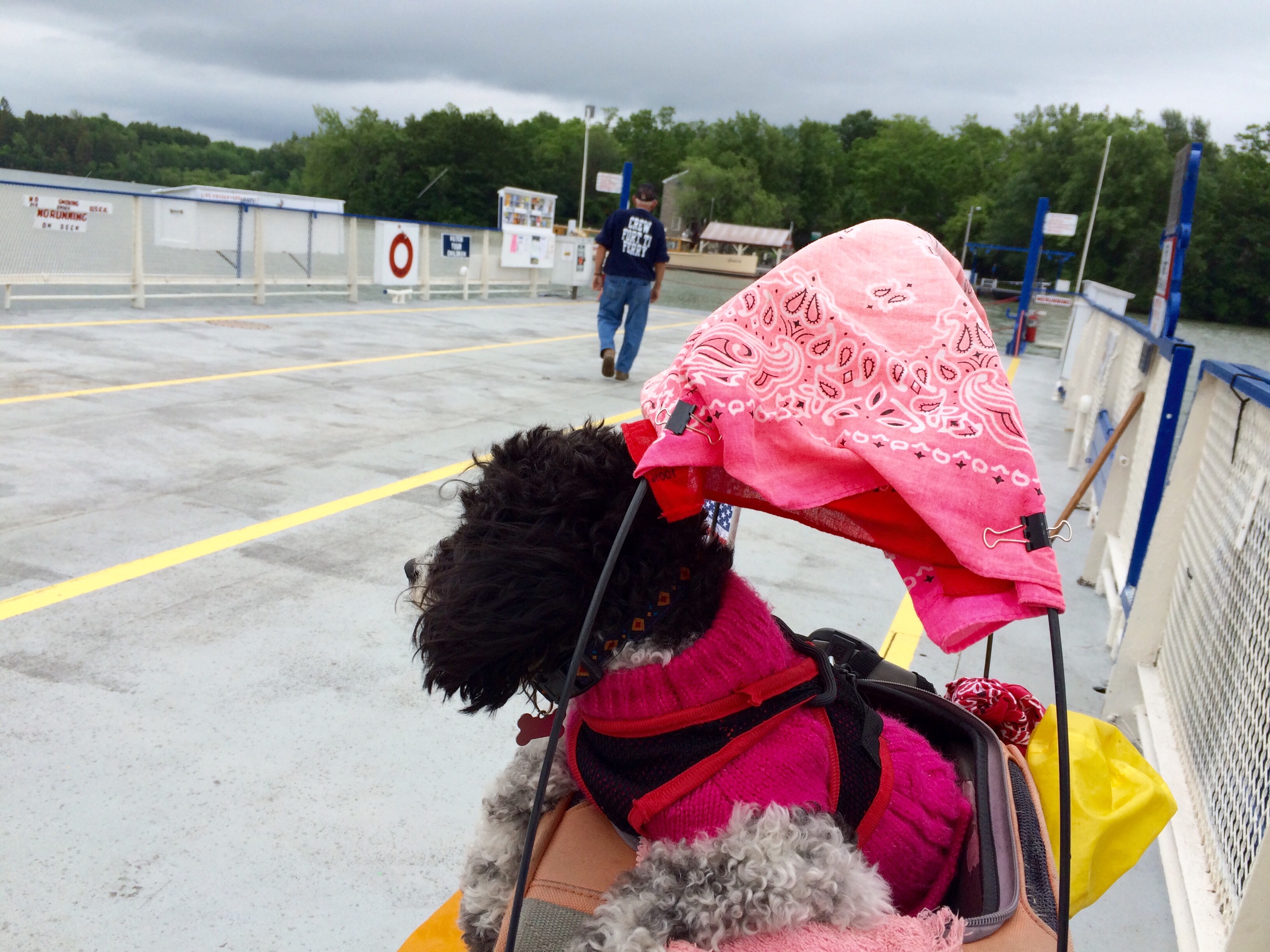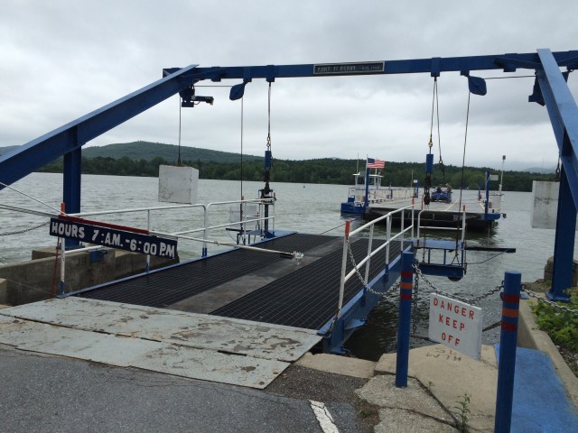 We took the two dollar ferry across to Ticonderoga, NY, and halfway across the river, the rain started pouring down even harder.