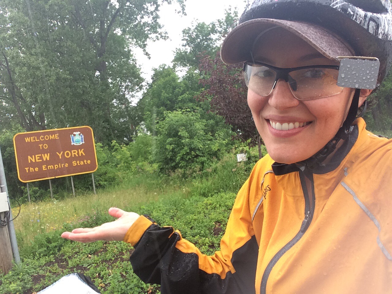 The first order of business was to get my long, unweildy mop of hair under control, so I stuck my raggedy-coiffed head into several salon doorways to ask if they had availability and non-glamourous rates. Without luck on my first two stops, my third try was a success, and hairstylist Karen even let me wheel dog-on-a-bike into her shop. She itantly ID’d me as someone “not from small town Ti!,” and when she heard about my adventure, she said in all seriousness that I was brave, and so did her aunt who came in a few minutes later. I don’t feel brave exactly, just…. lucky. Really, really lucky. Karen caught me up on the ongoing manhunt for the two murders who had recently escaped from prison just over an hour away from their home. She told me she’s seen a few state cop cars in town today, which was unusual, and that the news was showing a massive search effort underway just outside of the prison where the guys broke free. “Just be careful where you sleep at night!” she cautioned me. I doubt that I’m going to get bike-jacked by two dudes who don’t want to show their faces in public again, and I have a better chance of getting hit by lightning, or even a car, than the odds of running into them as I roll through NY. With my appropriately short, sassy, and manageable cut completed, I bid spunky Karen goodbye, but not before pleading to snap just one picture of her in her shop, despite her protestations.