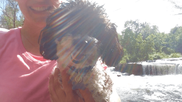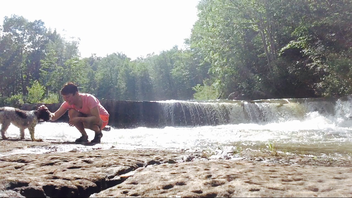 The baby La Chute river was pretty and easy to walk down to, so I read a little sign about it, stuck my feet in and sat quietly for a little bit listening to the water flow forcefully over the rocks, with Tunes by my side.