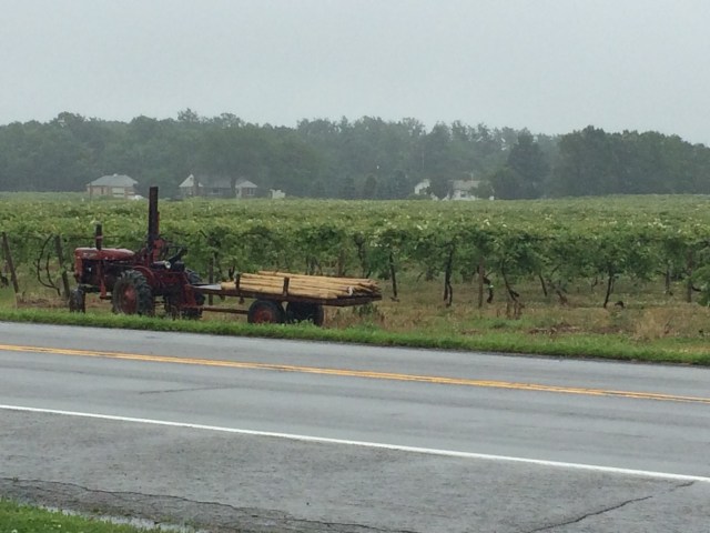 Sunday was a big day for me. I rode my longest day ever while touring. Actually, I think it was just plain old my longest day on a bike. I got an early start from my churchyard campsite, ran a couple of early AM errands in town, and booked it along the very-flat Route 5 through the last few towns in New York. The rain alternated from drizzle to downpour with an average of just wet, and the scenery was mostly residential or vineyards and cherry trees, so I just hauled it at a fast clip. In a few places, I got a peek through the trees at the vastness of Lake Erie, but for the most part I kept my eyes on the road and scanned the shoulder for nails or rocks or any other tire-puncturing debris.