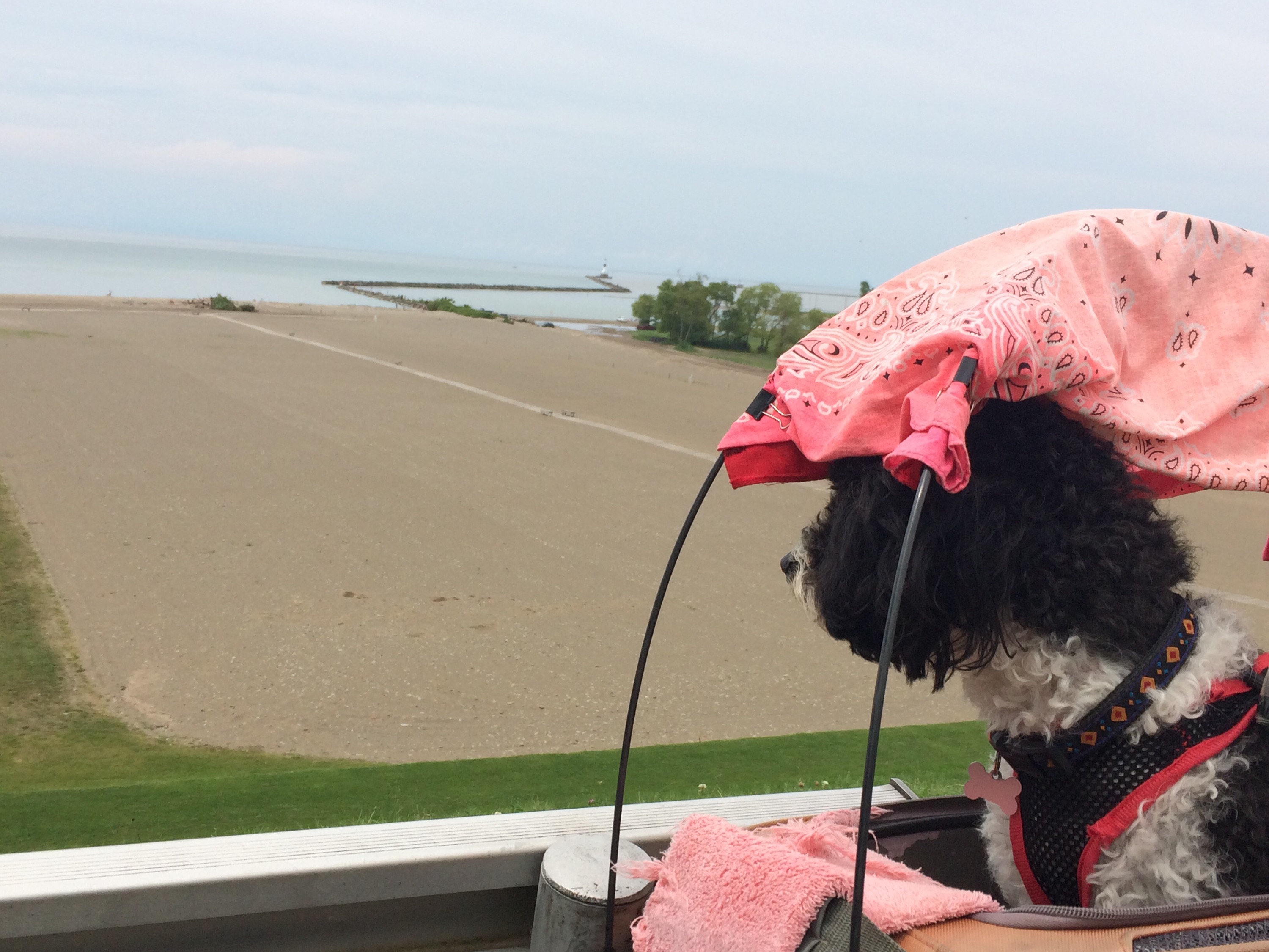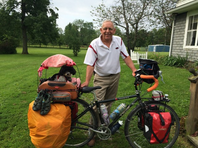 There were several nice views of Lake Erie and of a little lighthouse on a rocky jetty. After a 65 mile day, the finale was riding through the little touristy resort town of Geneva on the Lake, and we pulled up to next WS host’s house, Rick. Our last host Leo had practically sent us there, as he knew Rick (though had never actually met him in person) via their WS connection. I was starting to feel a bit like a WarmShowers mooch, but it was so nice to stay dry with all of the rain, and best of all, I was meeting so many interesting and inspiring people (and Tunes was getting a good amount of dog socialization as well).