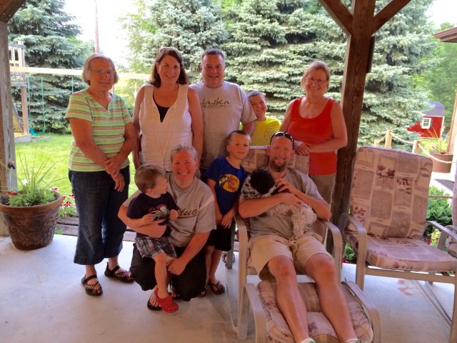 Rode 65 miles til Lagro, Indiana, and decided that I couldn’t go much farther, and was sadly out of food for the most part. Contacted a WS host, Lavonne, and she told me she’d welcome me to her outbuilding pavilion for the night and invited me to dine with her family, as well! I tried to head back to her place given her directions, but I got lost. She came to guide me behind her truck, which was incredibly nice. Had a really fun dinner with her big family, including her mother and her brothers and her extended family. It was wonderful– their sense of humor reminded me of home, and I was incredibly grateful for their company, and also for the amazing meal with all sorts of tasty goodness. Had fun meeting the kids, including young Landon, who aspired to be a cardiothorasic surgeon and wanted to see my first aid kit. Right on, smart dude! Lavonne’s daughter Kami also brought me to a grocery store so I could stock up. This family really went above and beyond to welcome and help me, and the little kids even played with Petunia, which was awsome.