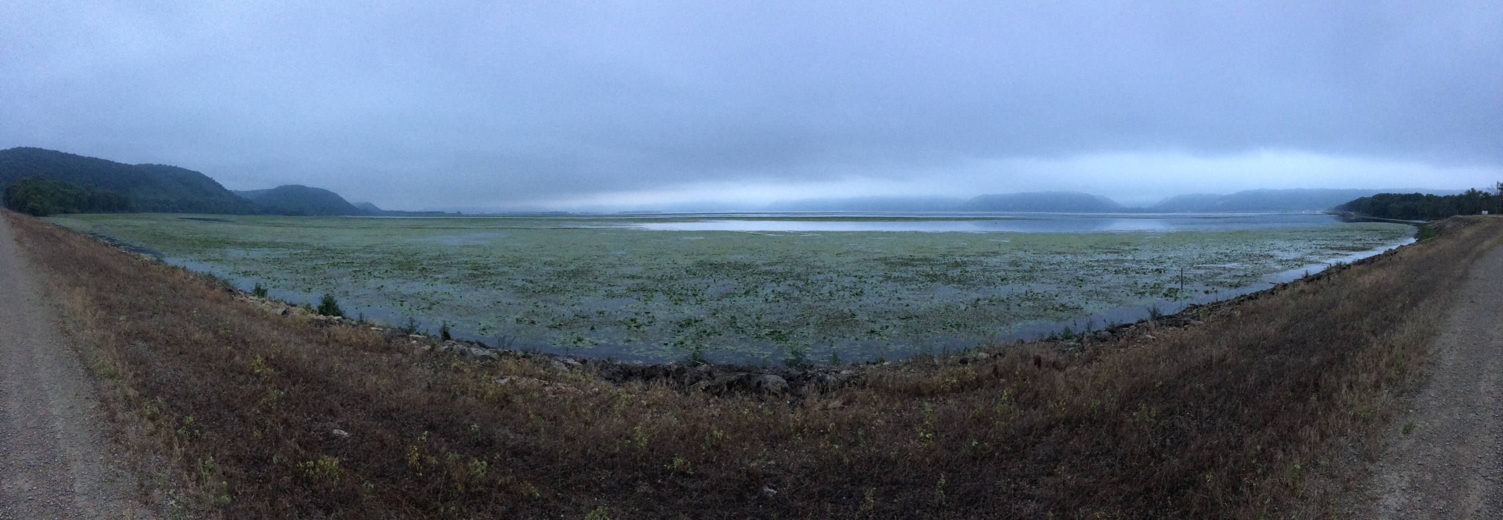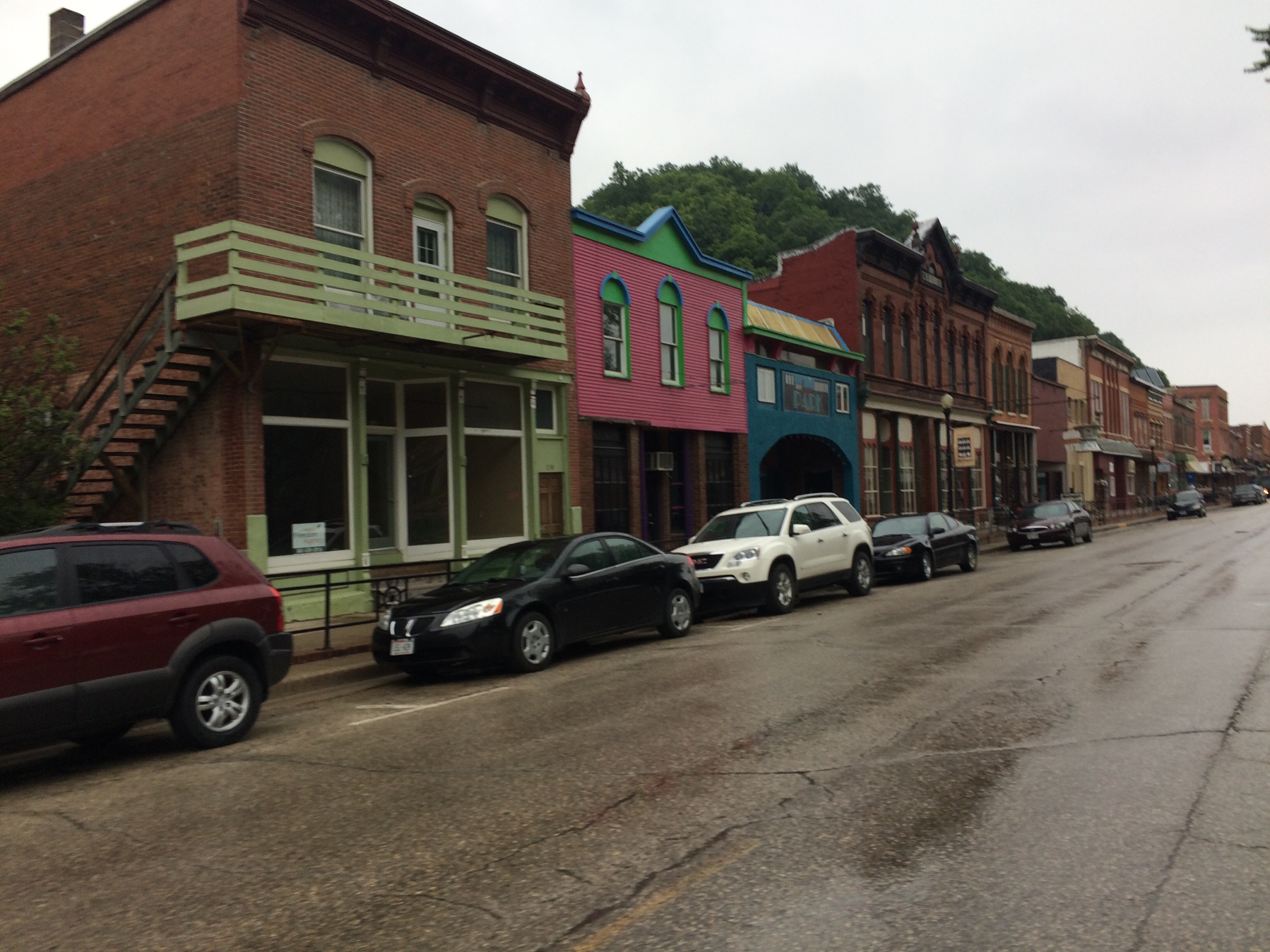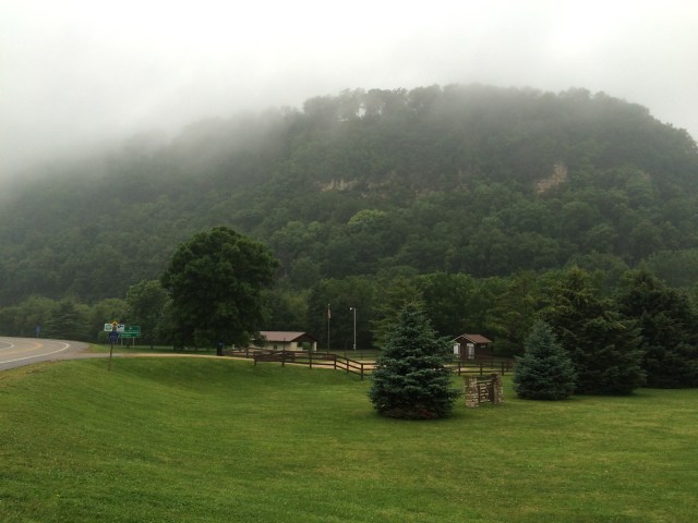 Another day, another chance to get rained on. Over breakfast, my host Mike and I discussed the day’s route and he warned me of the ridiculously steep climb out of Guttenburg, plus the rest of the day’s hills to come. The drizzle would continue on through the day, but the morning’s rain was forecasted to taper off by noon. I lingered for a while, debating whether I should take him up on his offer of driving my panniers to the top of the first mountain. I was slightly surprised by the hilliness of this part of the country, although the ACA map had mentioned the steep, rugged bluffs rising alongside the Mississippi River in the Driftless Area. From Wikipedia: