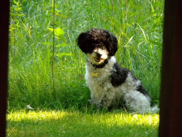 Brian told me about his family and three adult children, his contractor work and the restaurant he owned with his son, and the neat little second house he dubbed the Lock 9 Lodge after the river dam just down a walking path from his house. A handy and eco-sensitive guy, he’d built up the place with his own talents, re-purposing chicken coop windows, tin walls, a bay window that a client hadn’t been happy with, sinewy smooth tree branches as curtain rods, and amusingly, a bathroom door lock made out of an old screwdriver that slid into a drilled hole in the door frame. He invited me to take a walk with the dogs just before the sun was setting, and I thought a good stretch would be enjoyable, so we went out with a couple of cold IPAs and a bag of locally made cheese curds. I’d never had them before, but they were so fresh and soft, and they sort of squeaked on your teeth when you bit into them. Tunes seemed to enjoy them as well, but not nearly as much as the freedom of walking with another dog, bouncing through some grass and accumulating a terrible number of tiny, prickly cockaburs in her soft and curly hair.