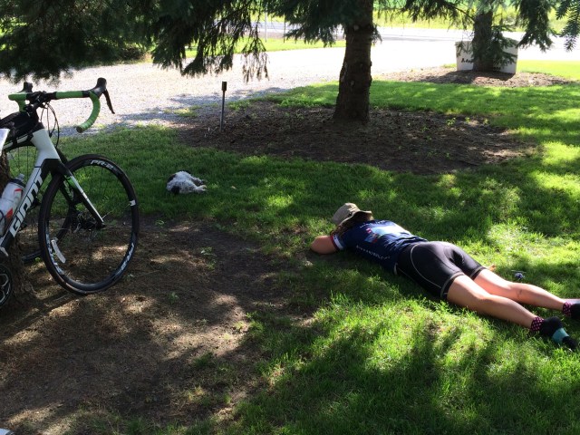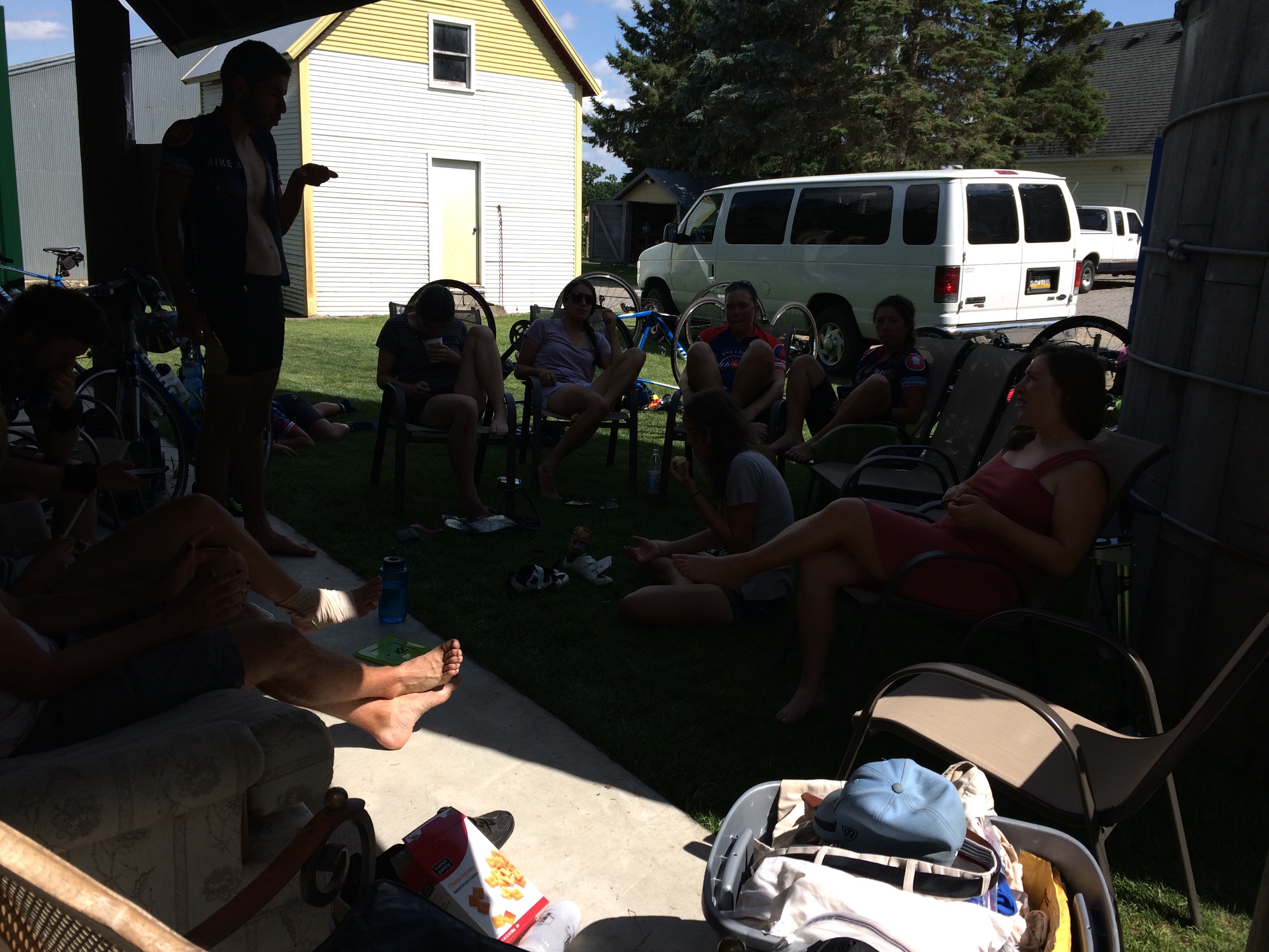 But the real kick was around 3-4 PM, when I was approaching a place on my map that was listed as a special “cyclists only lodging” site, which has usually meant a free cyclists hostel or church that has opened its doors to cross-country riders, or some other setup which has usually resulted in a memorable meeting and stay. I was on the fence about quitting so early in the day with only 50-something miles down, when alongside a blazingly bright and eerily empty country road a short line of trees in front of a remote farm house, and from behind them stepped out a young man in a familiar cycling jersey…. Bike and Build again! I was laughing hard as I cornered into the driveway at the lodge’s address, and came upon what looked like a pile of melting college kids, and they greeted me with laughter and reciprocal exclamations. They usually have partnered with churches so they sleep indoors, but on this occasion we were all together in this beautiful converted barn which bore the sign “Bicycle Bunkhouse.”