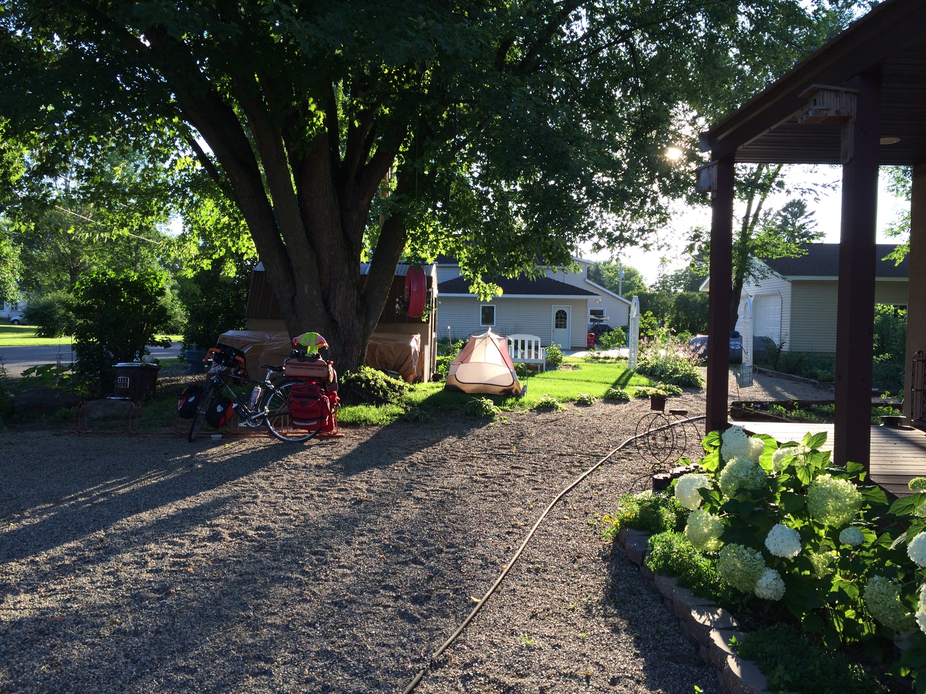 By sweaty day’s end, I arrived in Bowlus, MN. Camping in the park would’ve cost $10 or $20, but the nice folks at the very bike friendly restaurant called