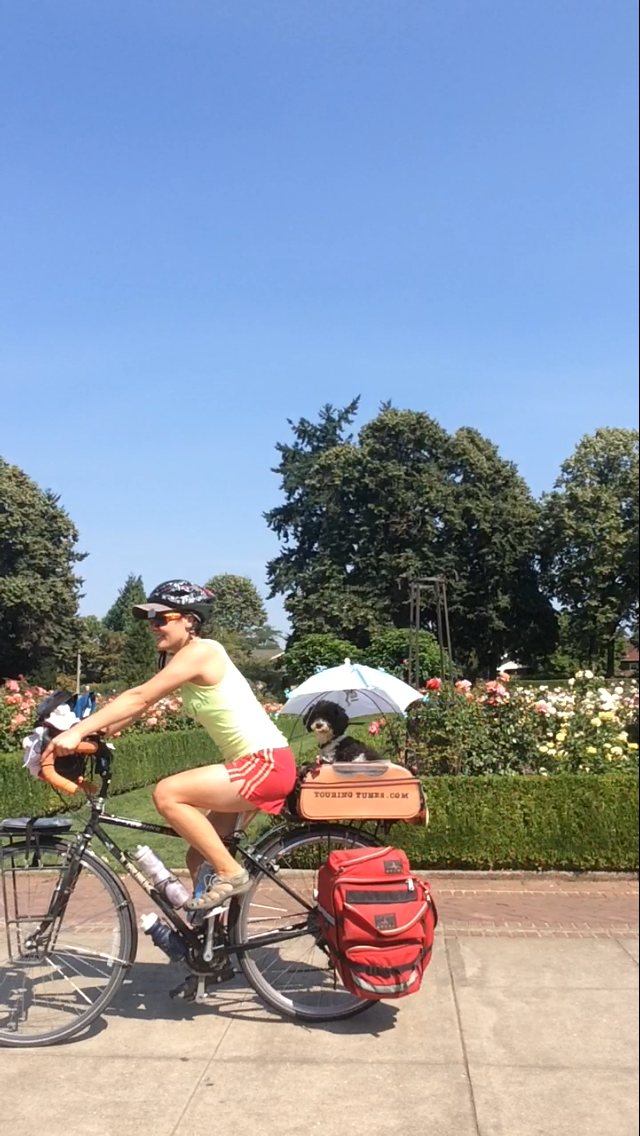 Petunia is a 13 year old Jackapoo (Jack Russell-poodle mix) who has traveled across the United States on the back of her human's bicycle.... twice. She's also cross-country cycled from Busan to Seoul, South Korea. Petunia and her human currently reside in Montana.